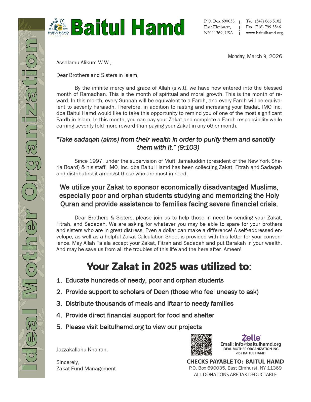 Baitul Hamd is very welcoming, the time I’ve spent here made my knowledge expand vastly. I have many great teachers who care and give me enough time to understand all the material being taught. The kind of care I’ve received from Mufti Saab and others always made me feel very welcomed and accepted.